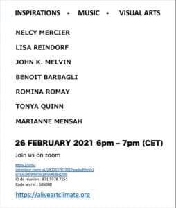 tors propose a sensitive and creative approach of climate change inspired by ecology and the relation with the Living. Alive! unleashes new artistic and creative experiences through visual arts, music and poetry. -