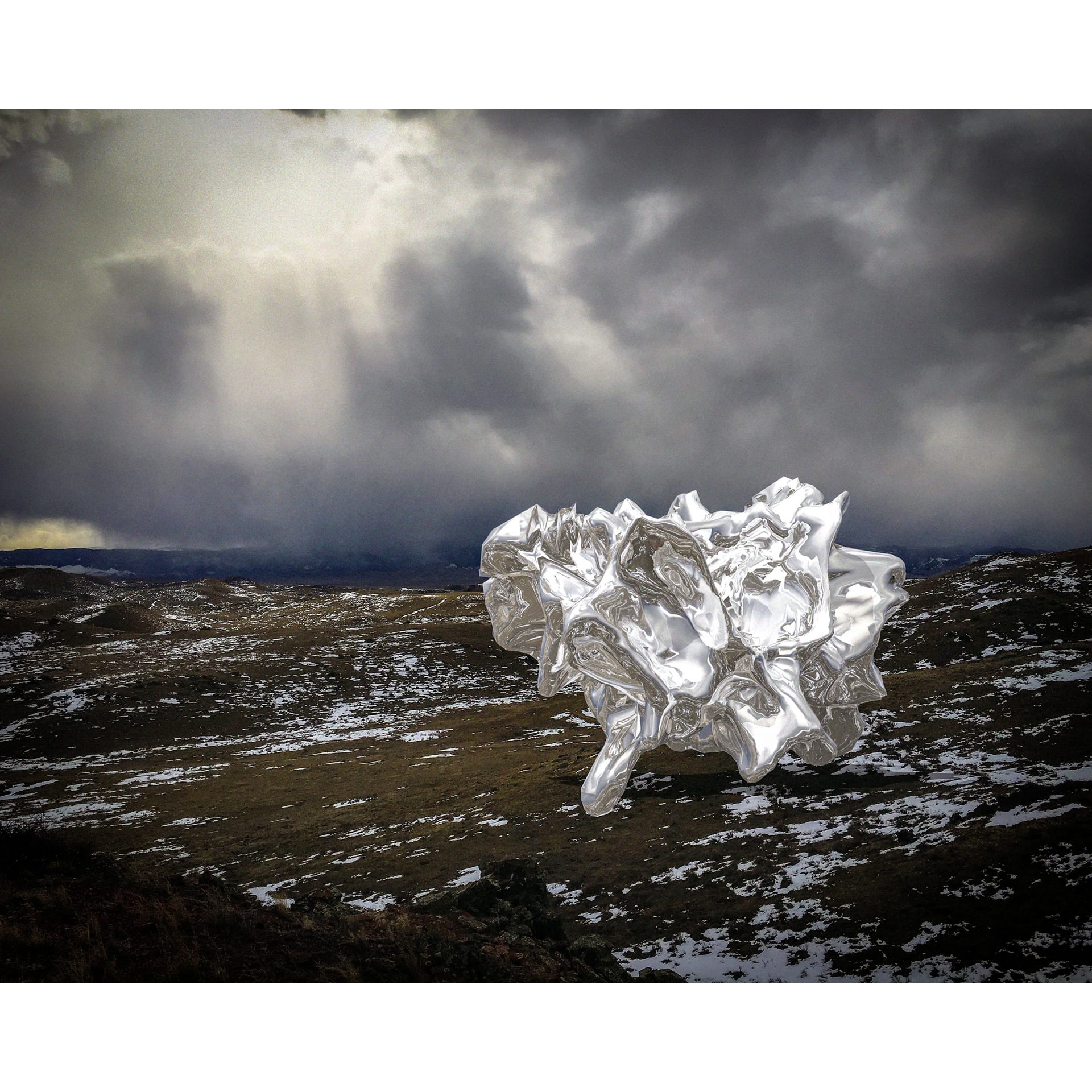 Free Range is an original work of digital art by Eco-Artist John K Melvin. The artist created this work inspired by the wide open spaces of Wyoming and Colorado while he was an artist-in-residence at the Jentel Foundation. He was driven by the idea of an Anthropocene artifact that would reflect the landscape and aspirations of a lost culture. Digital artifacts are intentionally revealed in the print to show the artist’s method and manner of image-making.