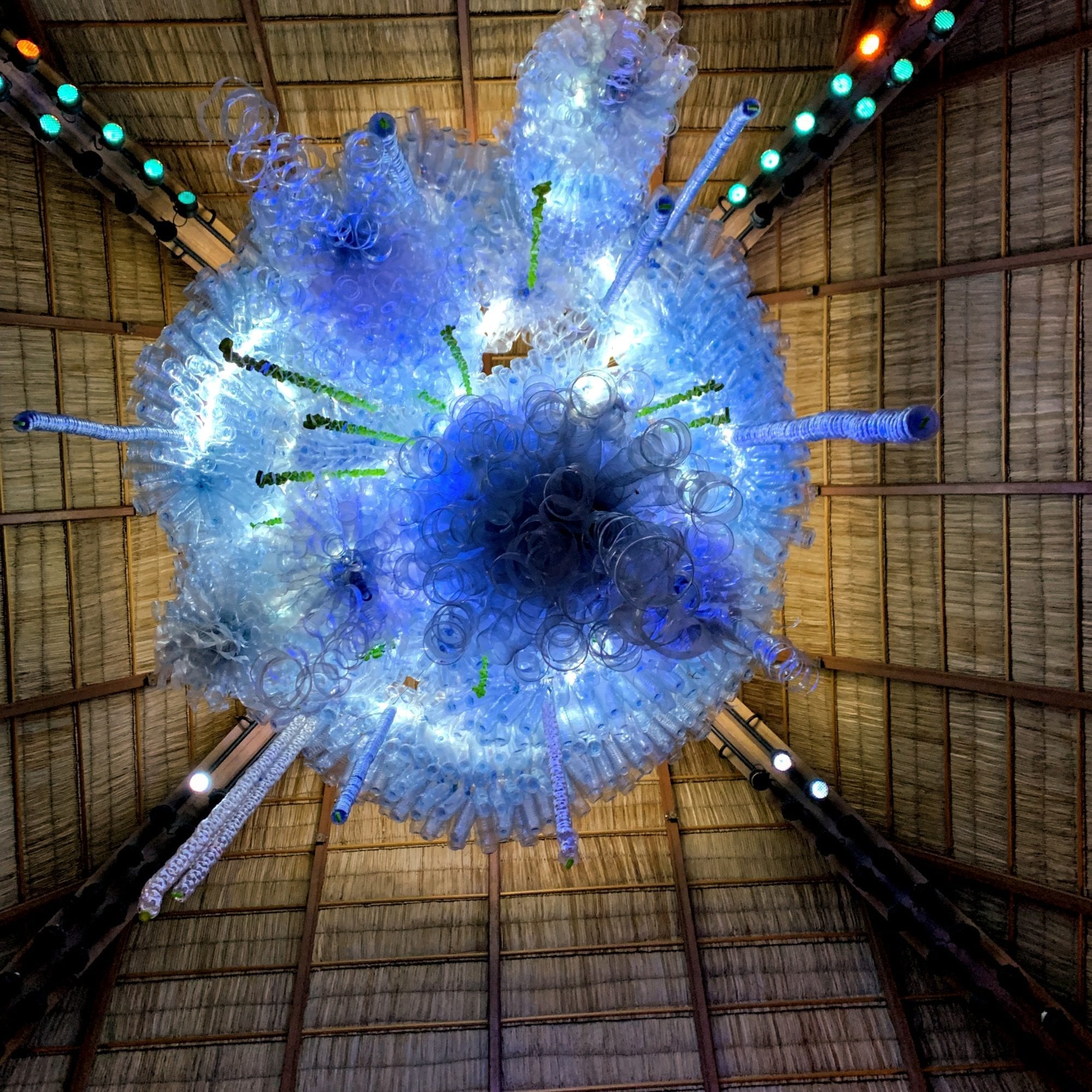 To help solve Plastic Pollution, I made an Eco-Art sculpture commission in the Maldives. I’m thrilled to introduce EvoGyre. She is a site-specific sculpture inspired by Jellyfish, composed of up-cycled single-use plastic bottles reclaimed from the local community in the Maldives.